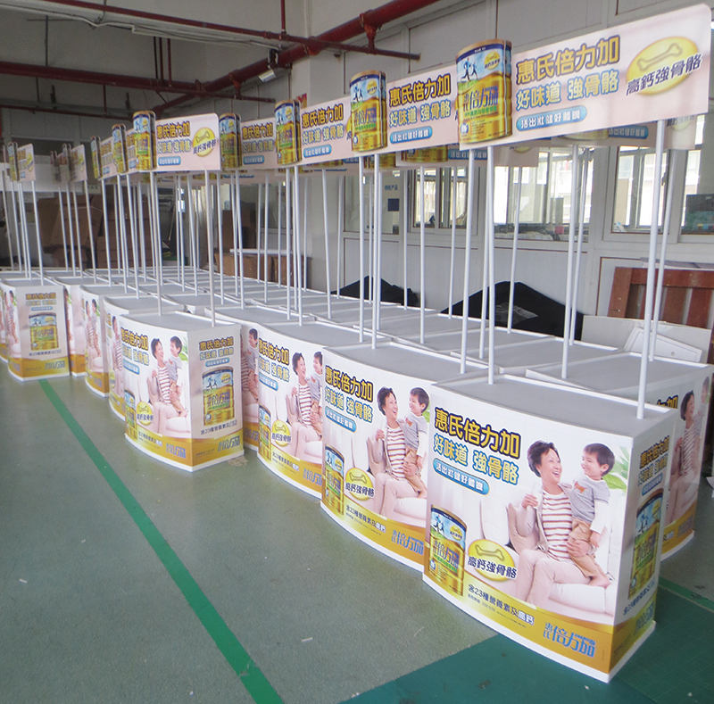 香港惠氏集团是我司的战略合作伙伴,我司主要给惠氏奶粉系列产品生产广告用促销台和易拉宝,促销台包括吸塑促销台,全铝合金促销台。易拉宝主要是宽底豪华易拉宝,易拉宝画面采用专业级PVC胶片,平整,不卷边。