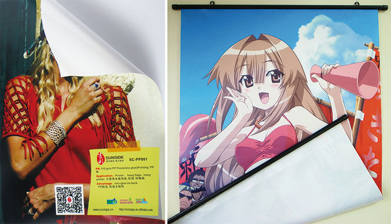 应用:PP纸喷画,背面无粘性,主要用来做海报,挂轴画,易拉宝。