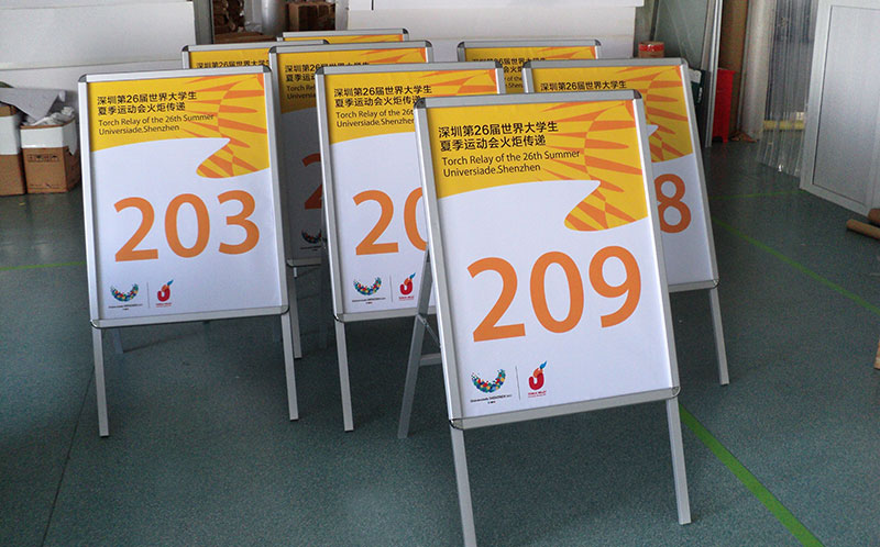 旗、刀旗、易拉宝、拉网展架、彩易展系统、快幕秀、促销台、L形展架、人像立牌、海报架等。