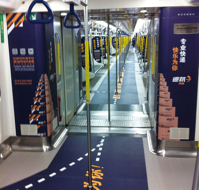 地铁喷绘物料的技术要求:贴纸海报类不干胶具备良好的可移性,灯片或灯布要符合阻燃要求,地贴防滑系数等级高,所有广告喷绘物料环保。喷绘画面精度要求2880Dpi。