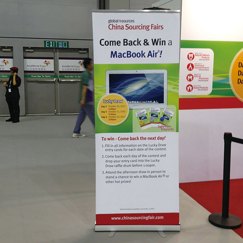 旗、刀旗、易拉宝、拉网展架、彩易展系统、快幕秀、促销台、L形展架、人像立牌、海报架等。