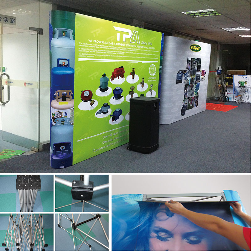 深圳生彩广告,专业拉网展架工厂。拉网展架由管件和连接件组成,可以伸缩,方便携带;